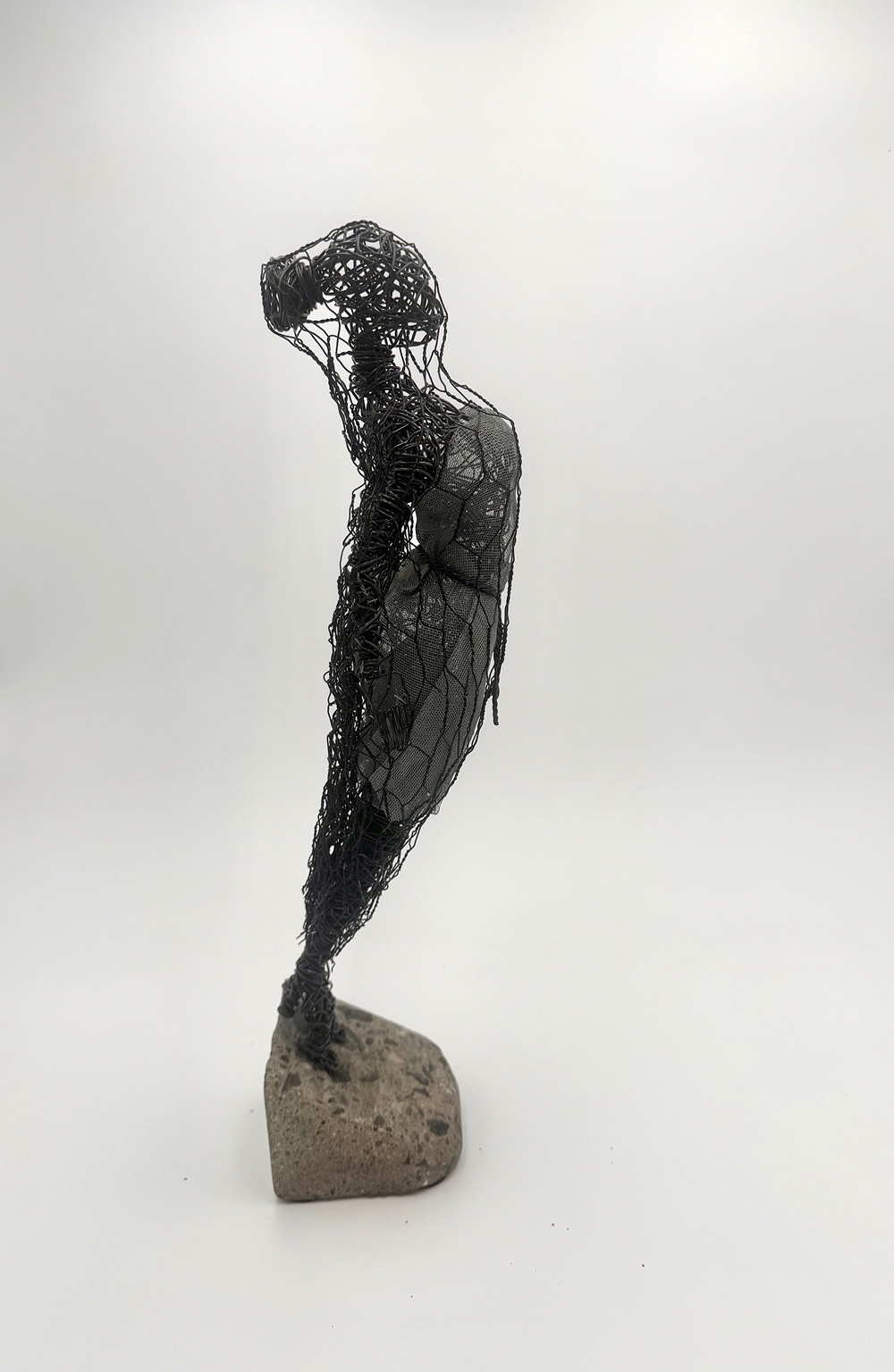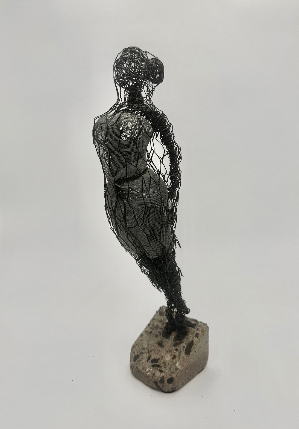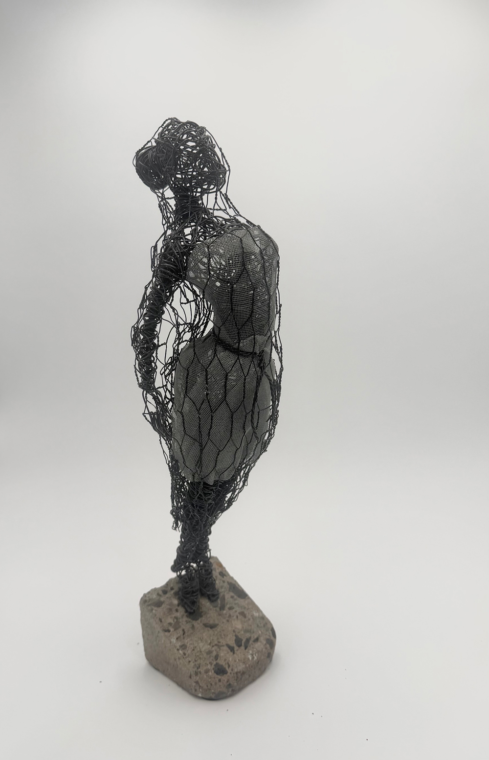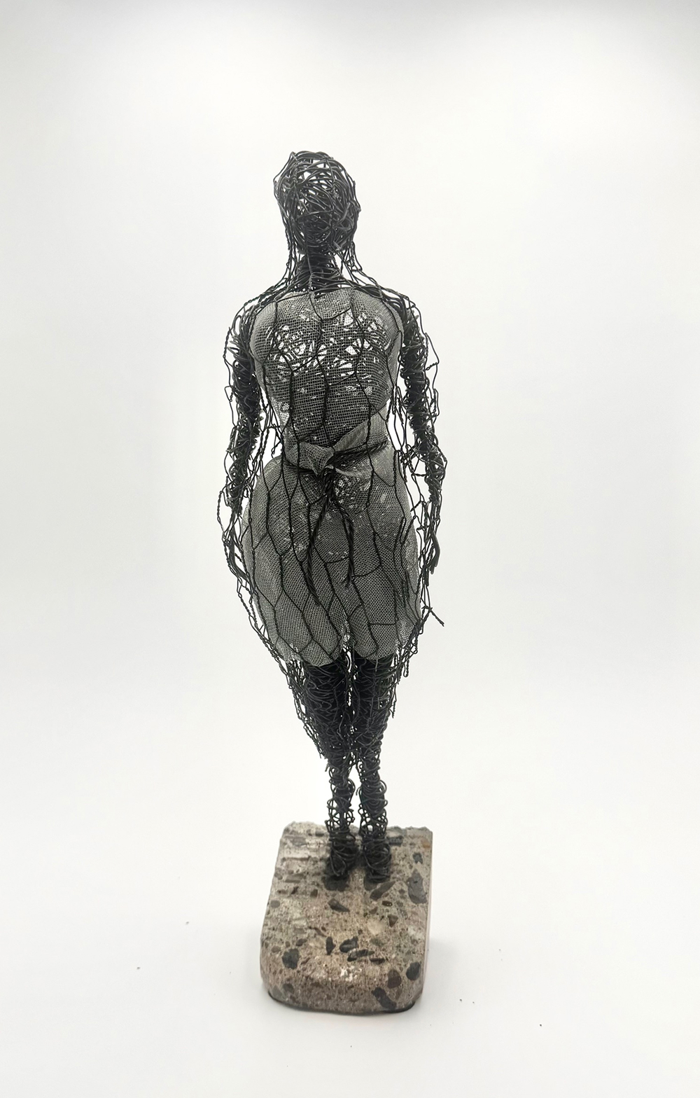 Through minimal materials and intricate craftsmanship, Karen transforms simple wire into a poetic reflection on vulnerability, resilience, and the complexity of human existence.